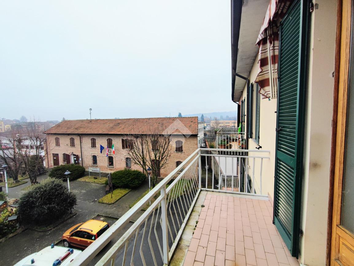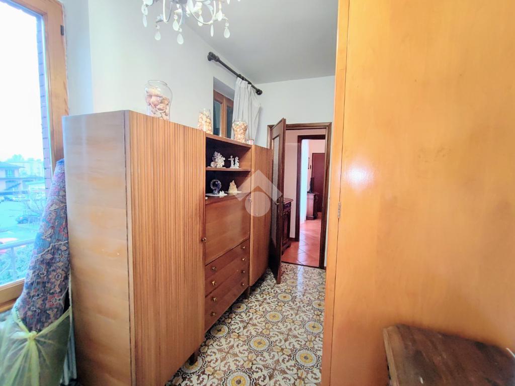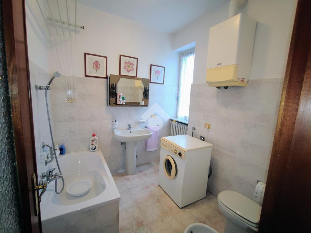 L' appartamento si trova al secondo e ultimo piano di piccola palazzina con irrisorie spese condominiali. L' ingresso è sul luminoso soggiorno completo di balcone con tende solari. La cucina è abitabile, anch'essa con affaccio sul balcone sul retro e con le tende solari. Il disimpegno porta alle due camere, una matrimoniale e una singola. Il bagno, in ordine, è ampio e con vasca.